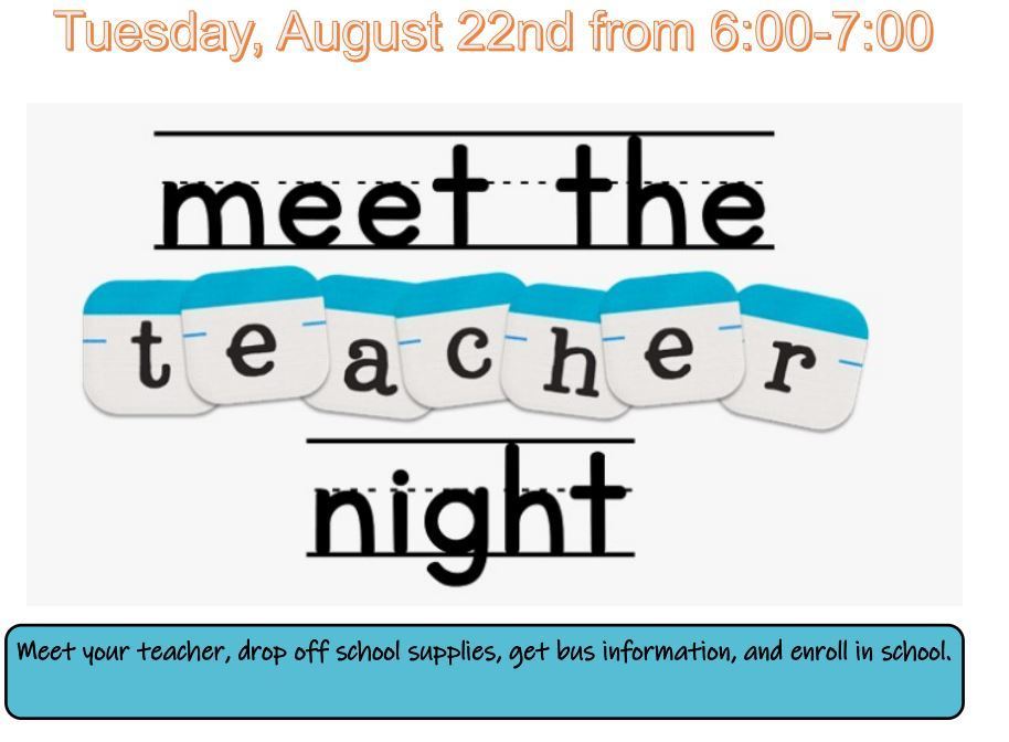Meet the Teacher Night is Tuesday, August 22nd from 6-7pm